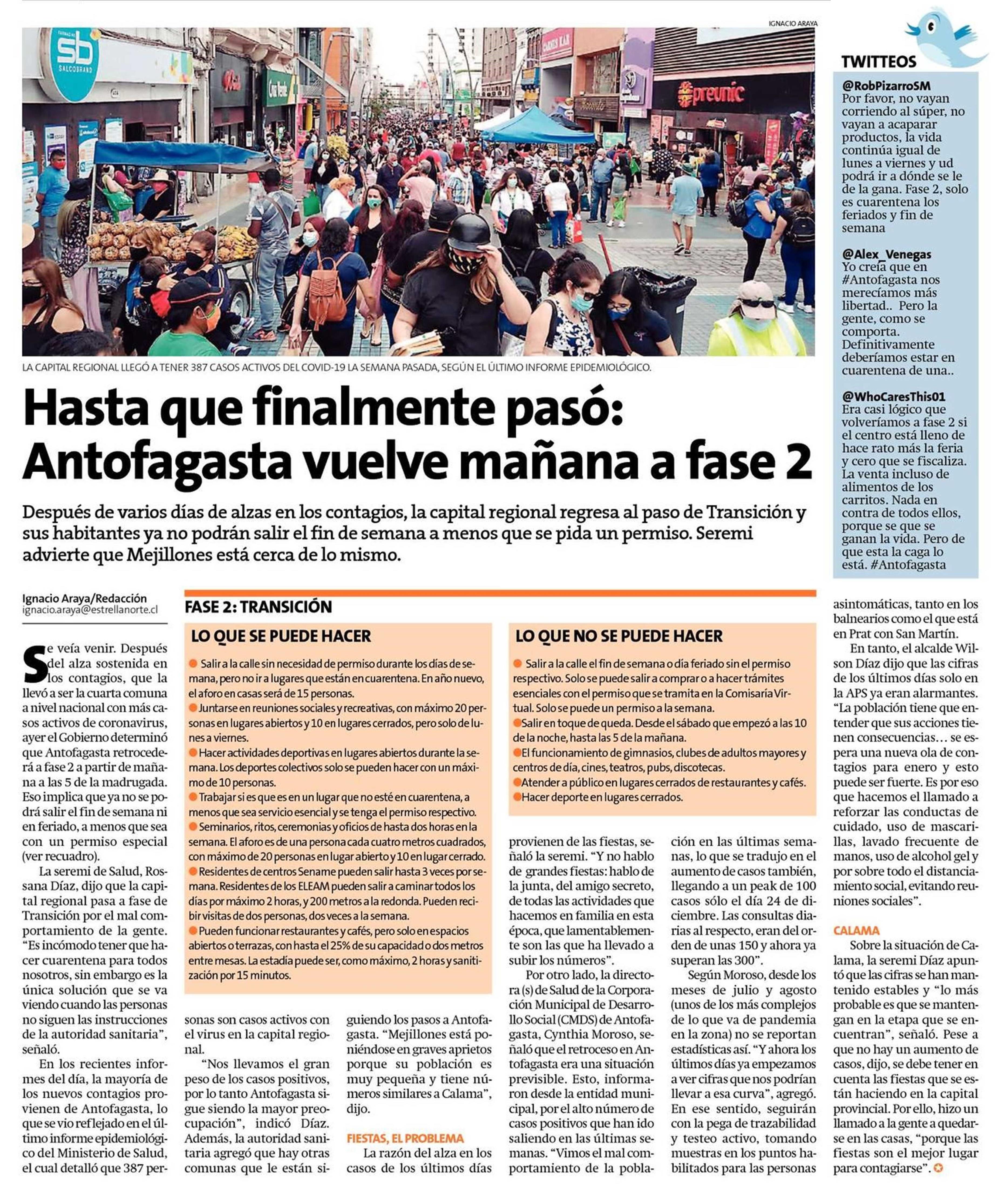 Fase 3 Antofagasta Que Se Puede Hacer : La fase 3 permite el consumo en la terraza, en el interior del local y ahora también en la barra, siempre con la premisa de mantener la distancia de 2 metros desde este lunes está permitido que se ocupen todas las plazas sentadas en el transporte público en metro, autobús o tren.. Mientras que el movimiento fuera de la. Las plazas, recintos e instalaciones taurinas pueden abrir con una limitación de aforo que garantice una persona por cada nueve el movimiento entre provincias de la misma comunidad autónoma en la fase 3 lo regulará cada región. Aunque a partir de ahora serán las comunidades las que decidan cómo se lleva a cabo en cada territorio esta fase. Además se permite ir a los toros o ver partidos de fútbol en un a las actividades que ya se permitían en la fase 2, se le suman estas otras, que vienen recogidas en el boe que se publicó el pasado 30 de mayo. Las franjas horarias se eliminan y las actividades de muchos sectores se flexibilizan, pero aún.